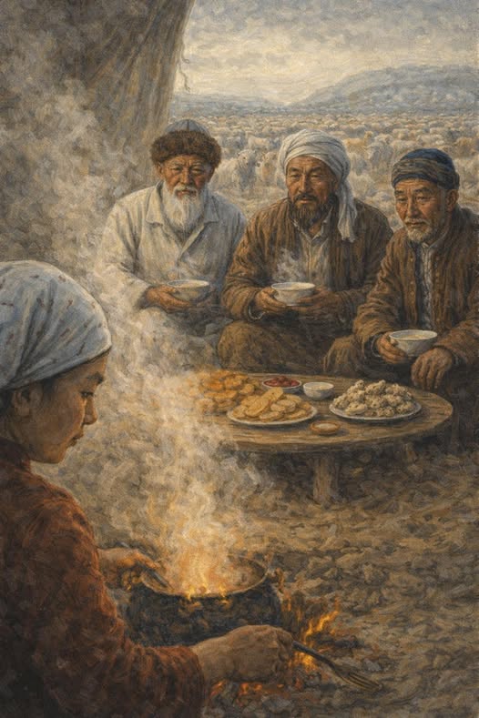 Қас қарайып, ақшамның уақыты болған тұс. Кйіз үйдің түндігін жауып, етегін түріп, түтіндік салғаны сол еді жолда қалған жолаушы едім деп тағыда бір кісі шаңыраққа бас сұқты. “Несібе ғайып”- деген. Бүгінгі асыңызды Алла тағала менің шаңырағымнан бұйыртып тұр-ау.
