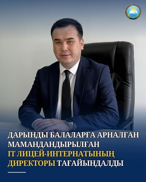 ДАРЫНДЫ БАЛАЛАРҒА АРНАЛҒАН МАМАНДАНДЫРЫЛҒАН IT ЛИЦЕЙ-ИНТЕРНАТЫНЫҢ ДИРЕКТОРЫ ТАҒАЙЫНДАЛДЫ