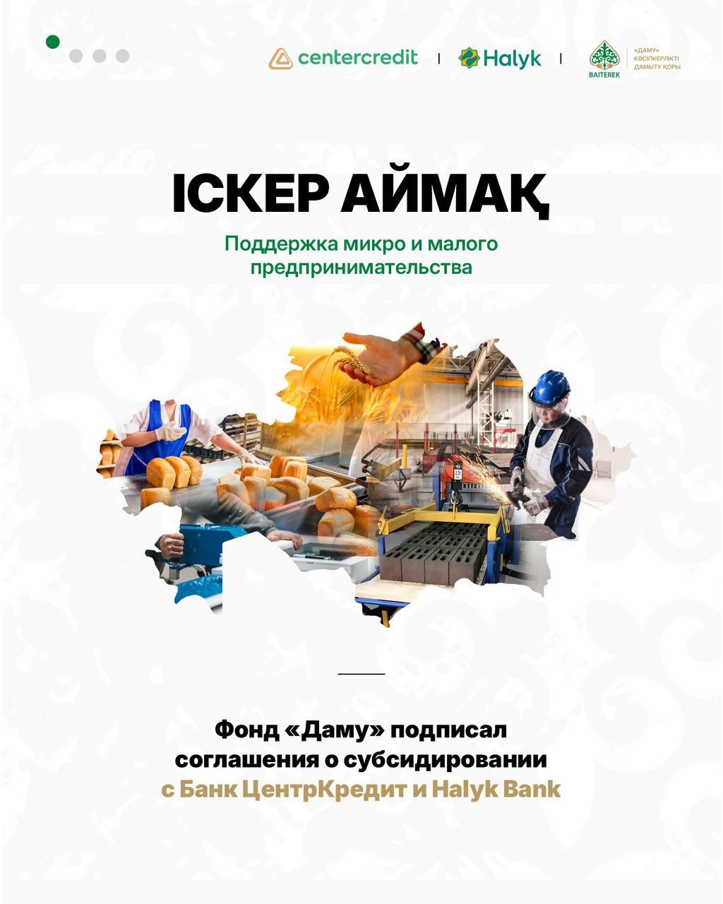 Фонд «Даму» подписал соглашения о субсидировании в рамках программы «Іскер аймақ» с Банк ЦентрКредит и Halyk Bank.