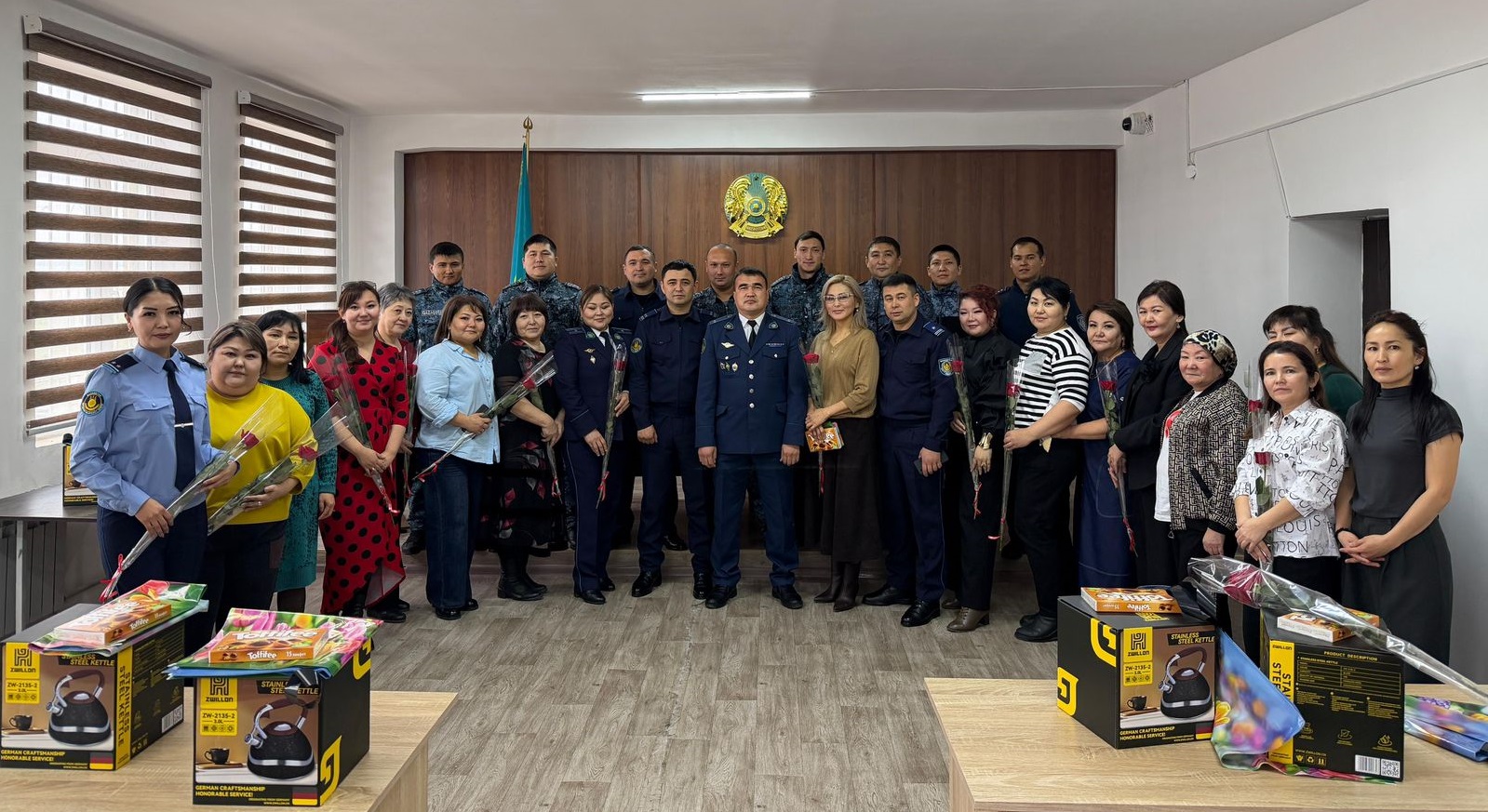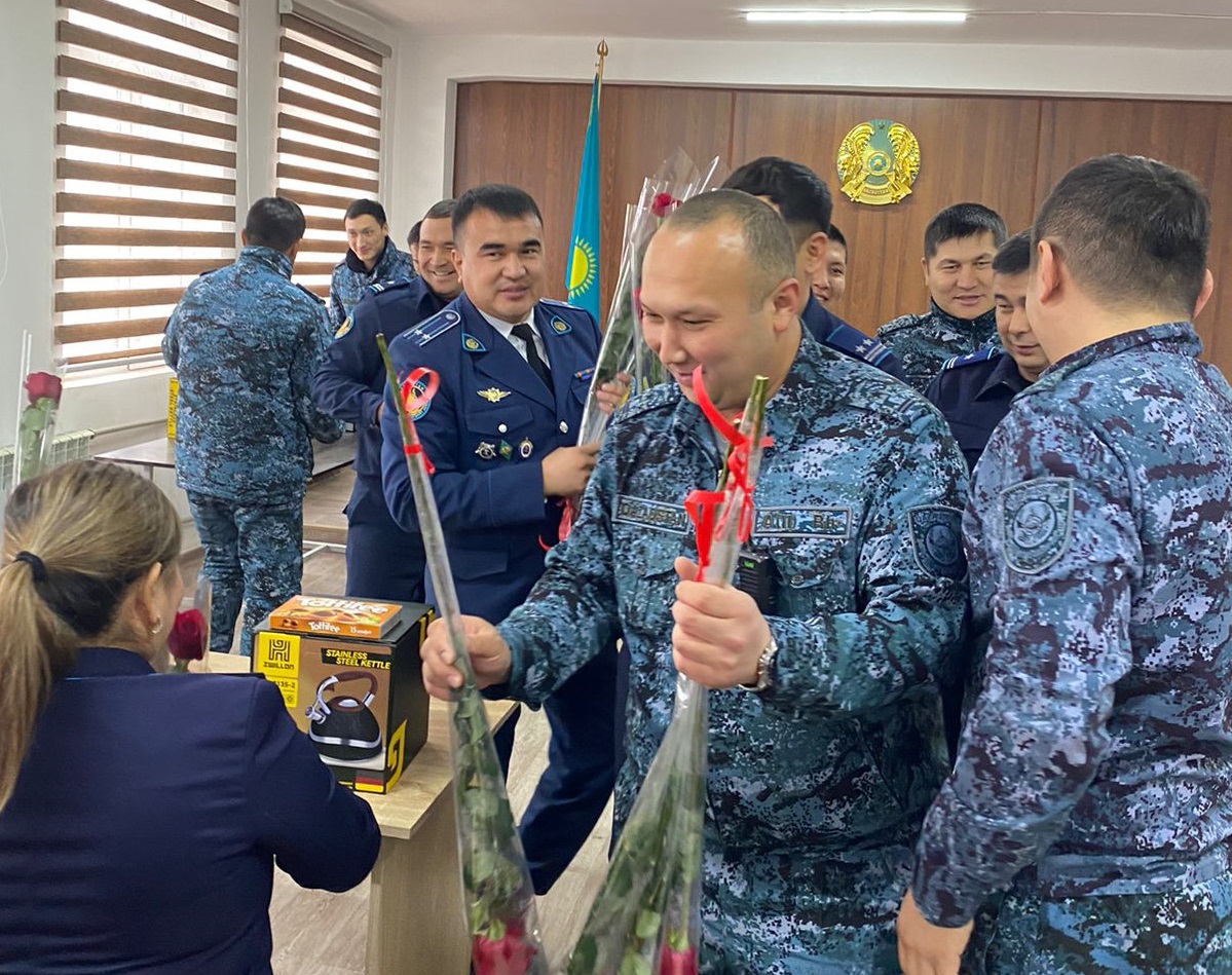 – Құрметті арулар! Сіздерді көктемнің шуақты мерекесімен шын жүректен құттықтаймын. Мерейлі мерекеде бар өздеріңізге лайықты құрмет көрсете отырып, дендеріңізге саулық, отбасыларыңызға амандық тілеймін. Сіздер біз секілді еразаматтармен бірге қиындығы мол салада абыройлы қызмет етіп келесіздер. Тәртіп сақшысы болу екінің бірінің қолынан келе бермейді. Ал сіздер бұл жұмыста жемісті жұмыс істеп жатырсыздар. Бұл ретте сіздерге алғысымыз шексіз, – деді мекеме бастығы.