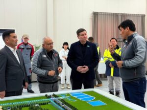 Сәкен Қаланұлы алдымен қарқынды жүргізіліп жатқан «QazaqSoda» ЖШС кальцилендірілген сода зауыты құрылысымен танысты. Зауыт 2027 жылы толық іске қосылады деп күтілуде.