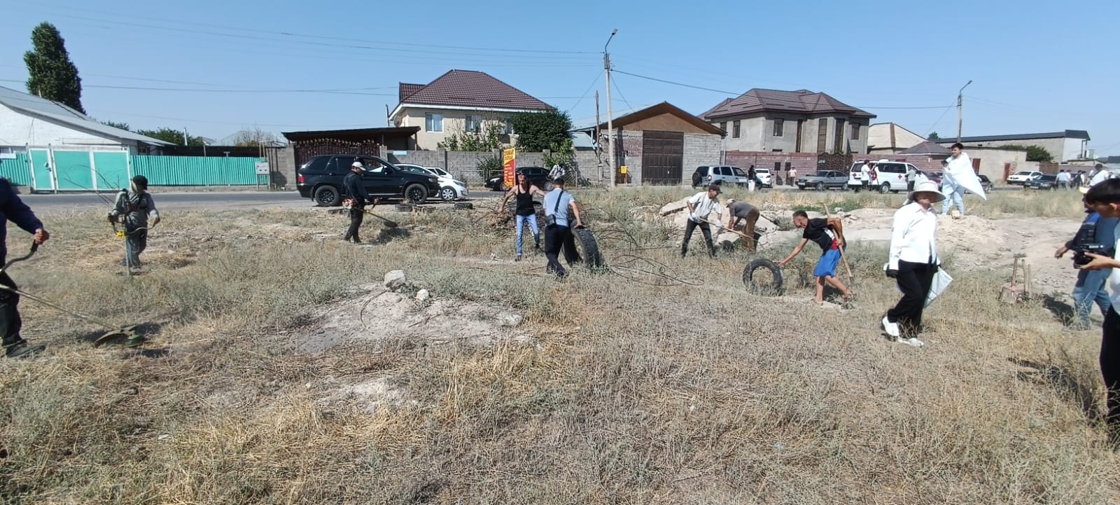 Сегодня более 300 молодых жамбылцев приняли участие в фестивале, организованный в массиве «Коктем» города Тараз, провели специальную уборку, скосили высохшую траву и очистили массив от мусора.