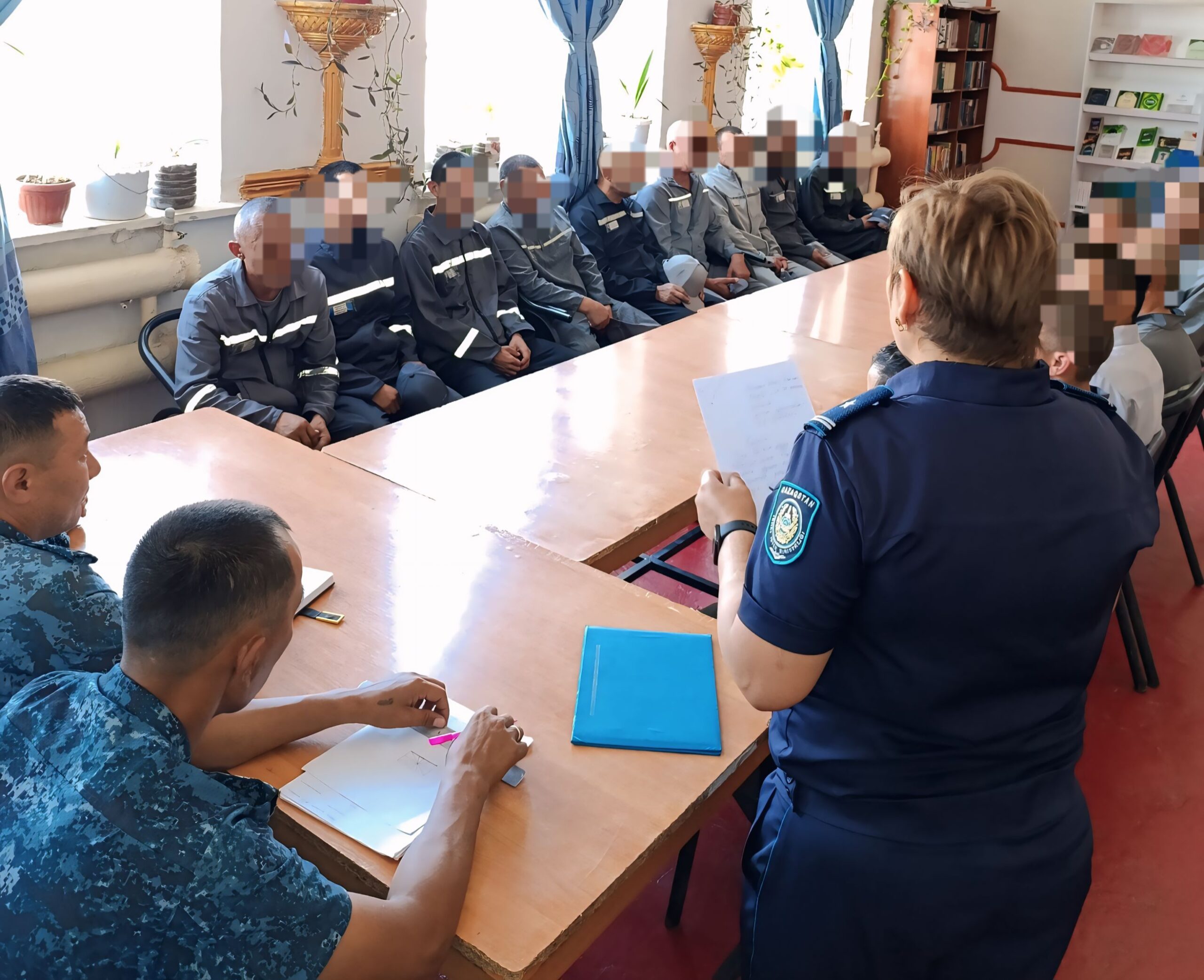 Сөз соңында мекеменің аға инспектор психологы әділет майоры М.Сейдуллаева, жаза басқан жандарға жасалған нақты көмек, олардың қоғамға қайта оралуына жағдай жасау деп түсіндіріп, тек олардың дұрыс жолға түсуіне жәрдемдесу, бостандықтағы өмірге дайындық жоспарларын талқылау мен өз құқықтары мен міндеттеріне жеке тоқталып түсіндірілді. Сотталғандардың қойған сұрақтарына нақты және толық жауаптар беріледі.