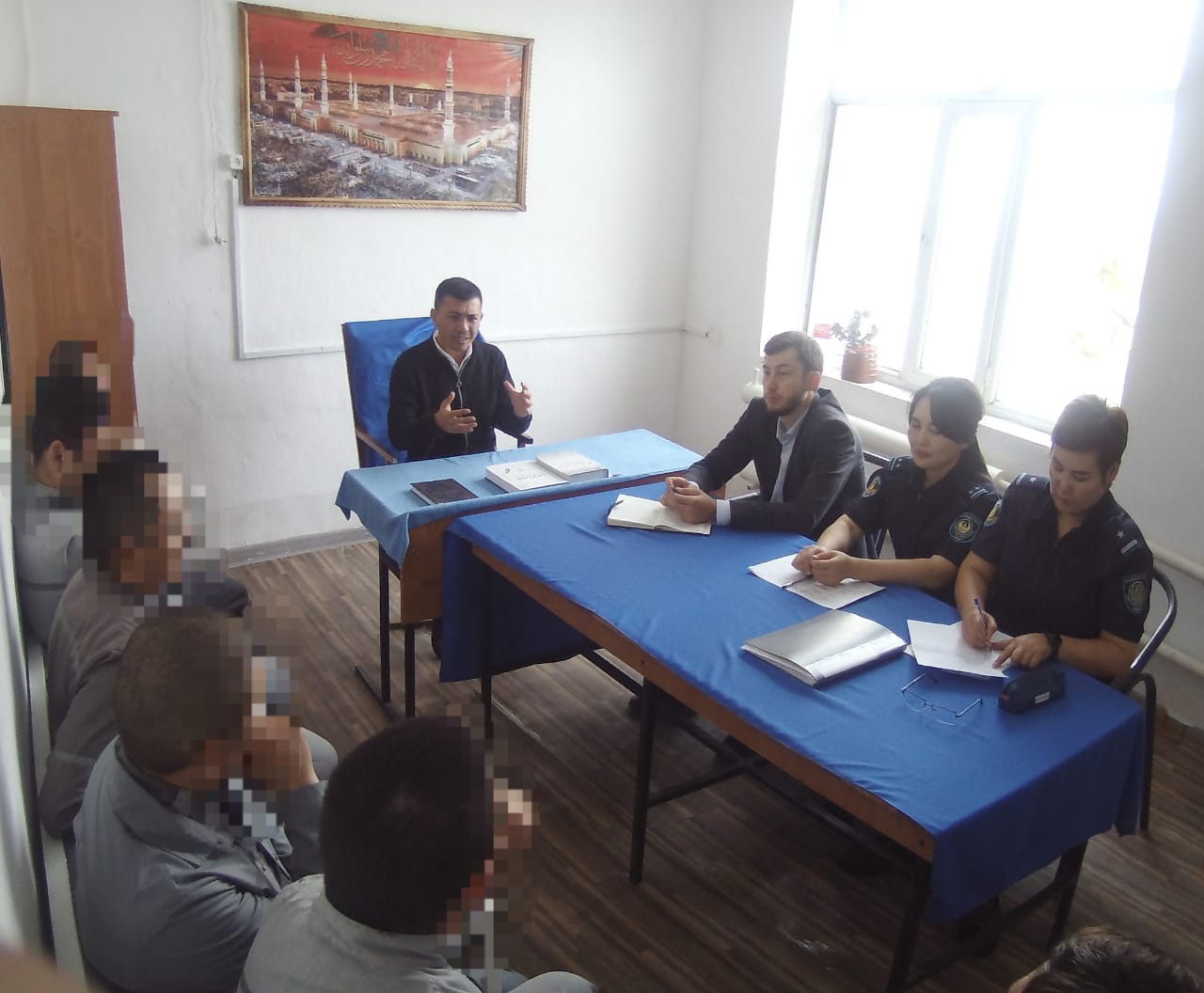 Жамбыл облысы әкімдігінің Дін проблемаларын зерттеу орталығының инспекторлары Мурзахметов Исламбек, Құлтаев Сержан, сонымен қатар №25 мекемесінің теологиялык оңалту жұмыстарын ұйымдастыру тобы аға инспекторы әділет капитаны Ж.Жаксыбекұлы, мекеменің психолог мамандары әділет майоры М.Сейдуллаева, әділет лейтенанты С.Әзімханова бірлескен түрде мекемедегі жазасын өтеп отырған сотталған азаматтармен «Дәстүрлі діни таным — Қазақ медениеті» тақырыбында психологиялық, рухани қолдау