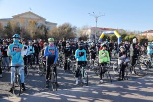 Жамбыл облысының әкімі Ербол Қарашөкеев қоғамда «Заң мен тәртіп» қағидатын қалыптастыру және салауатты өмір салтын насихаттау мақсатында өткен велошерудің ашылу салтанатына қатысты.