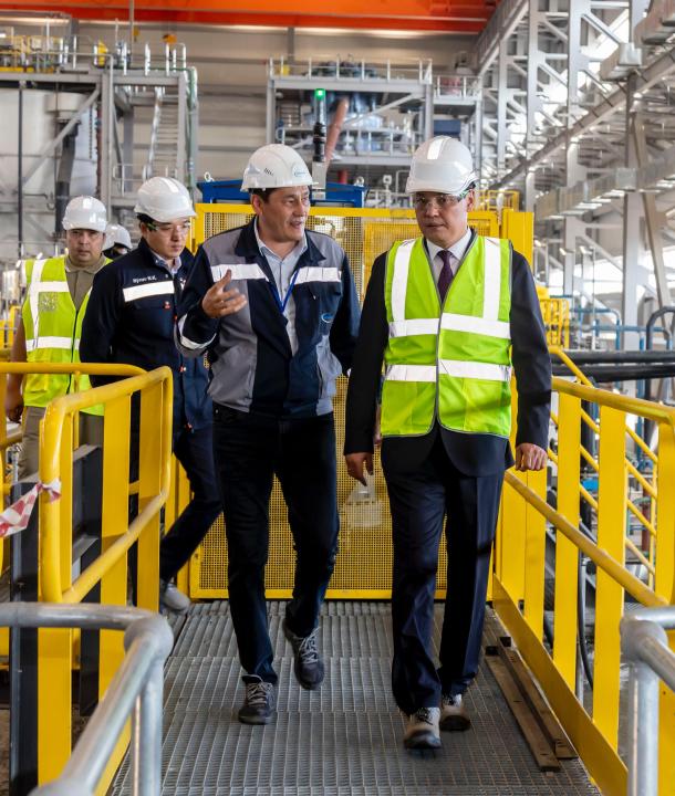 Облыс әкімі Ербол Қарашөкеев «Қазақмыс корпорациясы» ЖШС басқарма төрағасы Нұрахмет Нұриевпен бірге жаңа кәсіпорынның техникалық мүмкіндіктерімен танысып, аралап көрді.