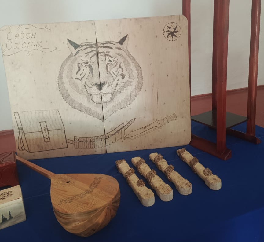 Мұнда ағаштан жасалған қолөнер туындыларынан өзге музыка аспаптары, сандықша, кәдесый сынды дүниелер жасалып қойылған.
