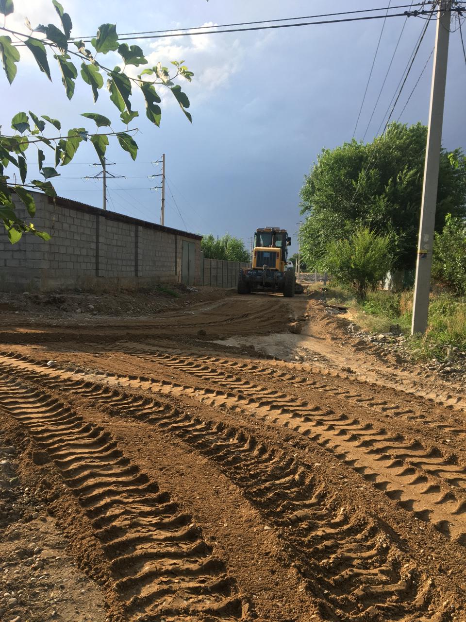 Тараз қаласының қант зауыт аумағының Айнакөл, Оқым Қортыс көшелеріне құмды шағалды қоспа төселінуде.