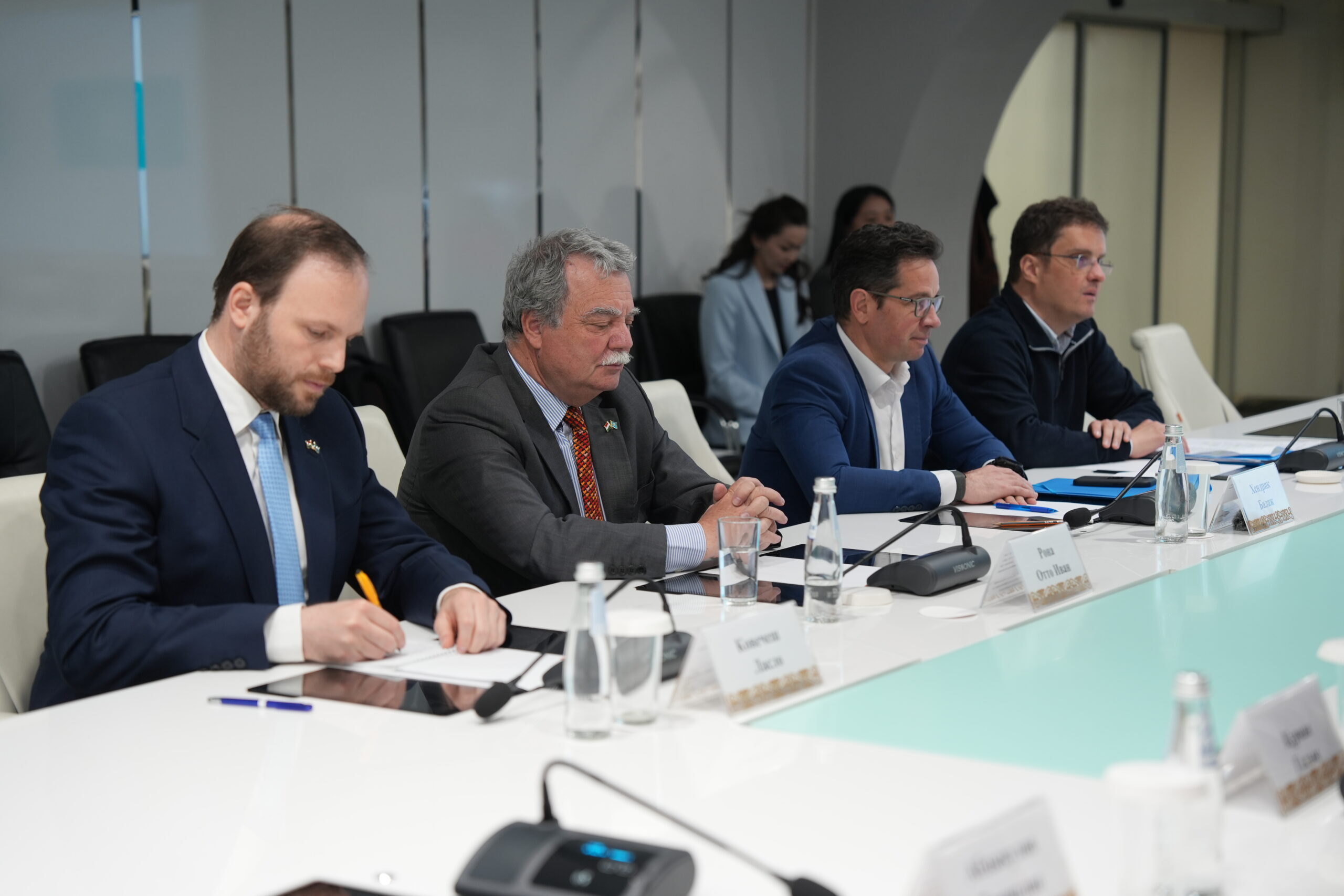 В рамках Регионального экологического саммита министр водных ресурсов и ирригации Нуржан Нуржигитов встретился с исполнительным директором Представительства Организации тюркских государств (ОТГ) в Будапеште – председателем правления Института предотвращения засух при ОТГ Балажом Хендриком и исполнительным директором Института Ласло Орлошем.