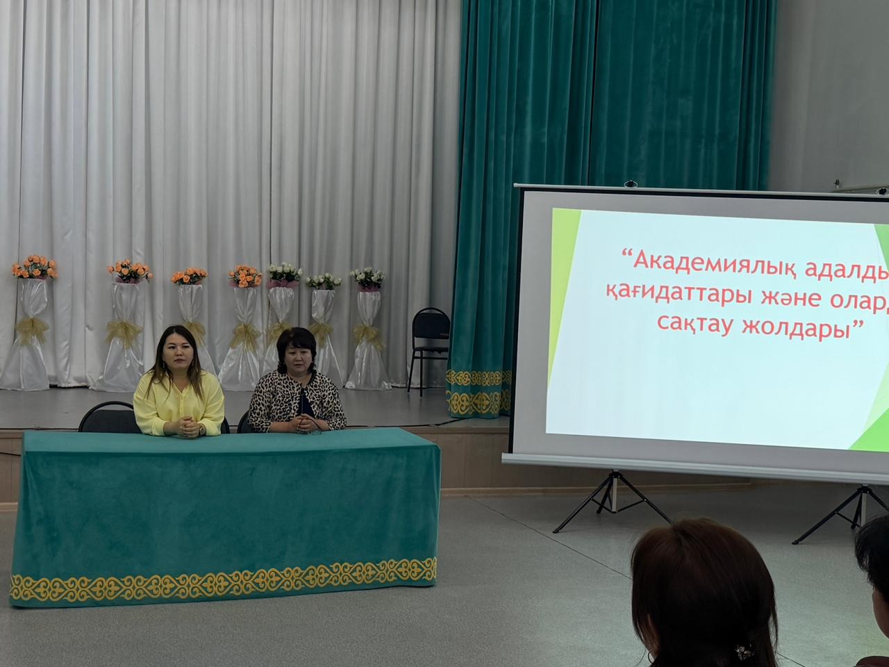 Кездесуге мектептің педагогикалық ұжымы қатысып, білім беру саласындағы адалдық принциптері, кәсіби этика және оқу үдерісіндегі әділдікті қамтамасыз ету мәселелері кеңінен қарастырылды.