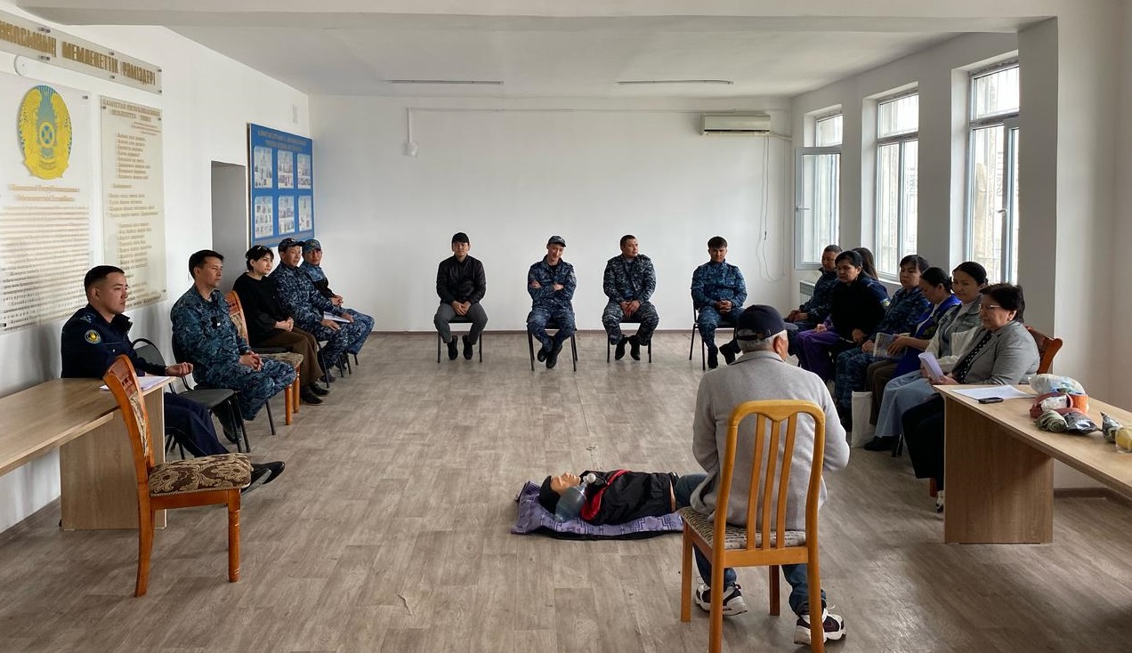 Осыған орай, Жамбыл облысы бойынша ҚАЖ департаментіне қарасты №25 мекемесінің жеке құрам қызметкерлеріне алғашқы медициналық жәрдем көрсетуді үйретуге бағытталған арнайы сабақ өткізілді. Шарада Жамбыл облысы әкімдігі денсаулық сақтау басқармасына қарасты №5 емхананың дәрігері Амангелді Салықов алғашқы көмектің негізгі шараларынан хабар берді.