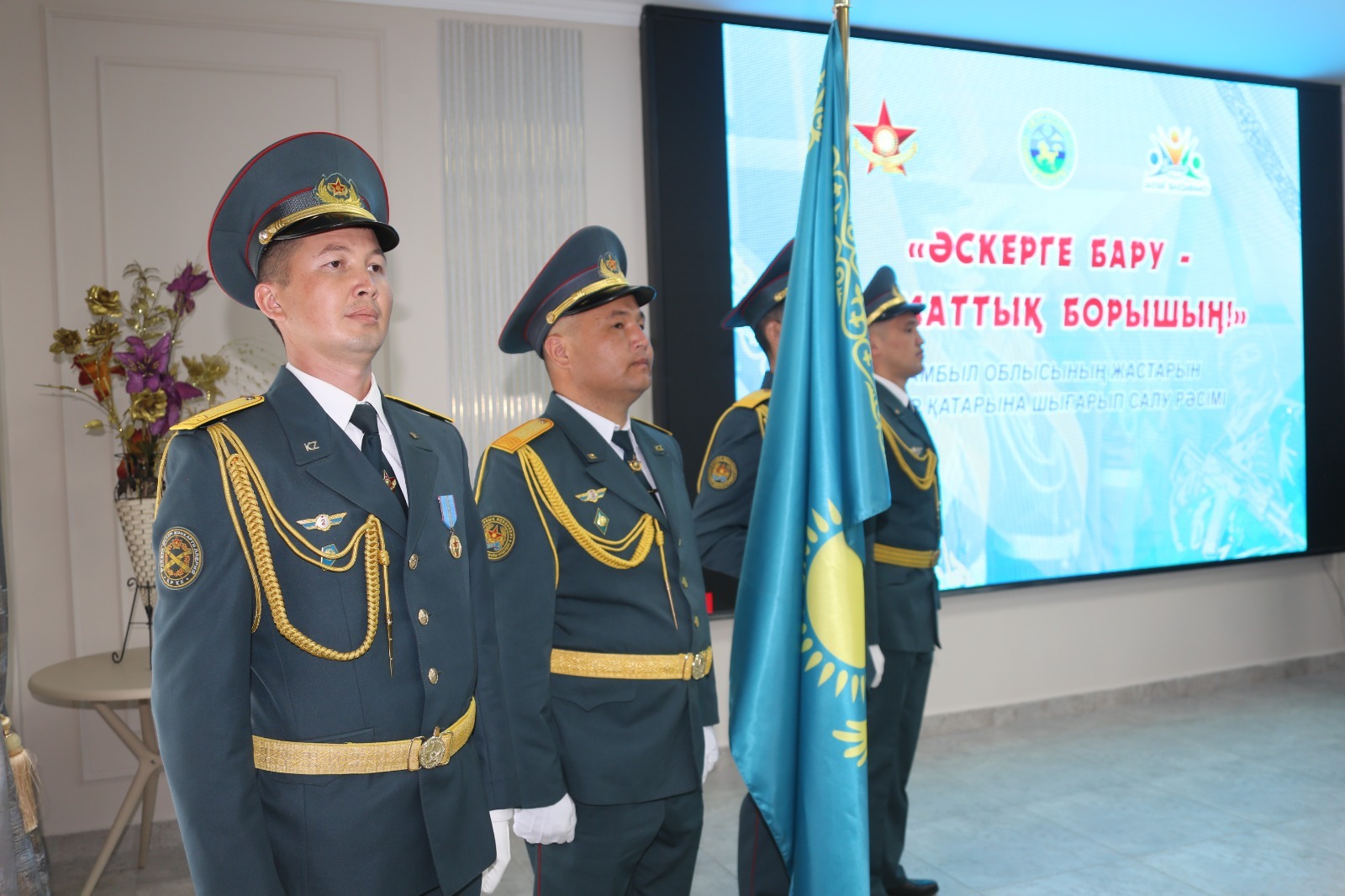 Жамбыл облысының жастарын әскер қатарына шығарып салу рәсімі өтті . Жамбыл облысының қорғаныс істері жөніндегі департаментінің қолдауымен облыс әкімдігінің жастар саясаты мәселелері басқармасының ұйымдастыруымен «Әскерге бару-азаматтық борышың!» атты Жамбыл облысының жастарын әскер қатарына шығарып салу рәсімі өтті.