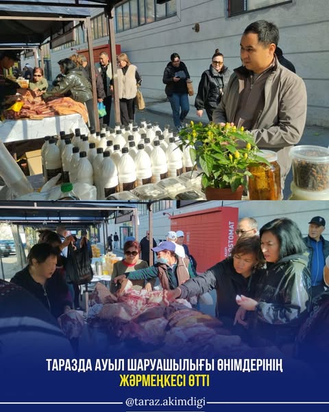Тараз тұрғындарының ауыл шаруашылығы өнімдеріне қол жетімділігін қамтамасыз ету мақсатында әлеуметтік базар алаңында өткізіліп жатқан ауыл шаруашылығы өнімдерінің жәрмеңкесіне Байзақ, Жамбыл, Т.Рысқұлов аудандары мен Тараз қаласы тауар өндірушілерінің және тұрақтандыру қорының өнімдері жеткізілген.