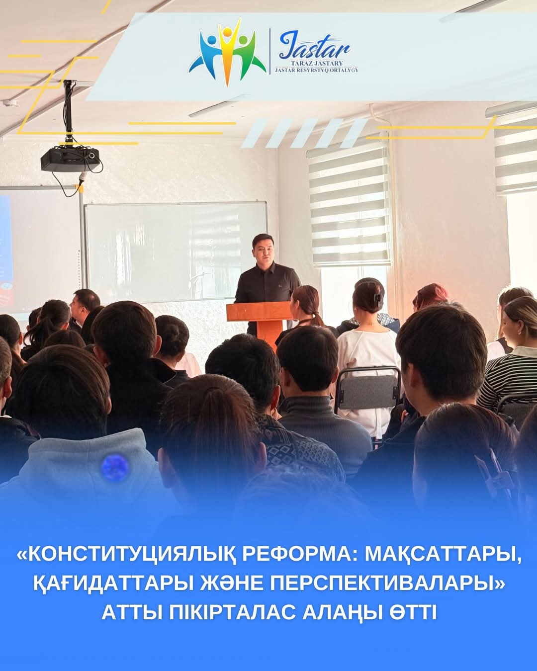 Ағымдағы жылдың 4 ақпанында Тараз қаласы әкімдігінің ішкі саясат бөлімі Жастар ресурстық орталығының ұйымдастыруымен «Конституциялық реформа: мақсаттары, қағидаттары және перспективалары» атты пікірталас алаңы өтті.