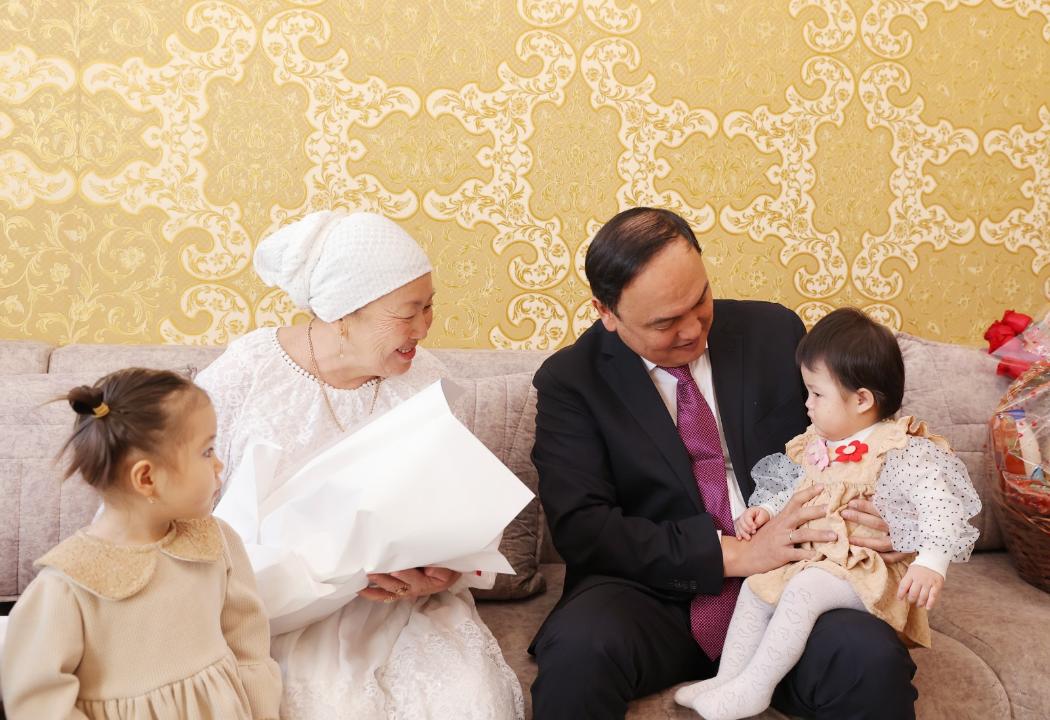 – Бір ғасырға жуық ғұмыр кешіп, тағылымы мол өмір жолын қалыптастырдыңыз. Саналы ғұмырыңызды білім мен тәрбиеге арнап, ұзақ жылдар ұстаздық еттіңіз. Халқымыз «Ұстаз – ұлы есім» дейді. Сіздің өмір жолыңыз осы сөздің шынайы мәнін айқын көрсетеді.