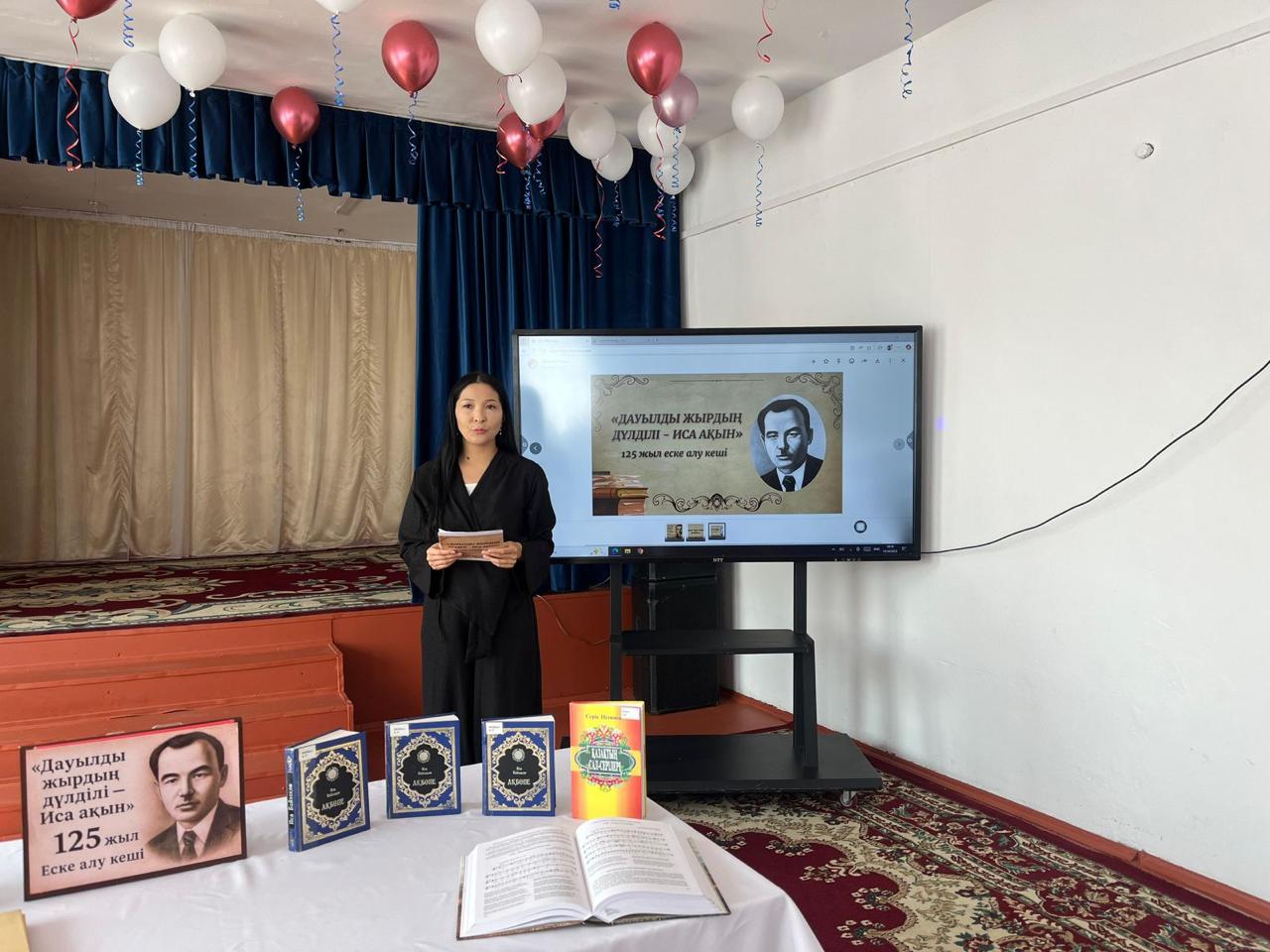 Сонымен қатар «Алтай аясында» мен «Құралай сұлу» поэмаларының үзінділері айтылып, оқушыларға Иса жыры — мәңгілік, себебі ол ел рухын көтерген, өнердің биігіне жол ашқан тұлға екендігі насихатталды.