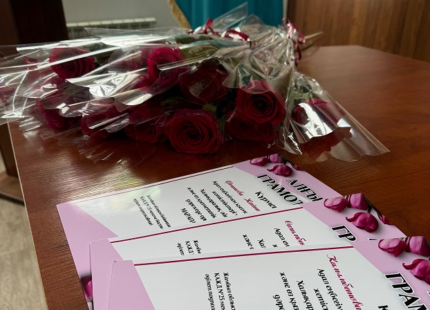 Бұдан кейін мерекелік шара қыз-келіншектерді марапаттауға ұласты. Осылайша мекемеде қызмет ететін нәзік жандылар мен бұрымдылар құрметке бөленді. Аруларға мекеме бастығының Алғыс хаты мен гүл шоқтары, сондай-ақ естелікке сыйлықтар табыс етілді.