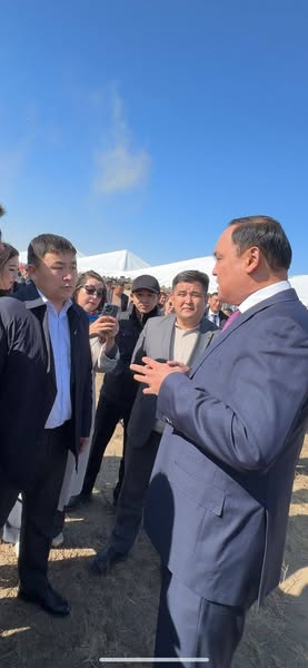 Салтанатты рәсімінен кейін облыс әкімі Ербол Қарашөкеев бірден журналистерге қарай жақындады. Амандық саулық сұрасып, олармен емен жарқын әңгіме айтты.