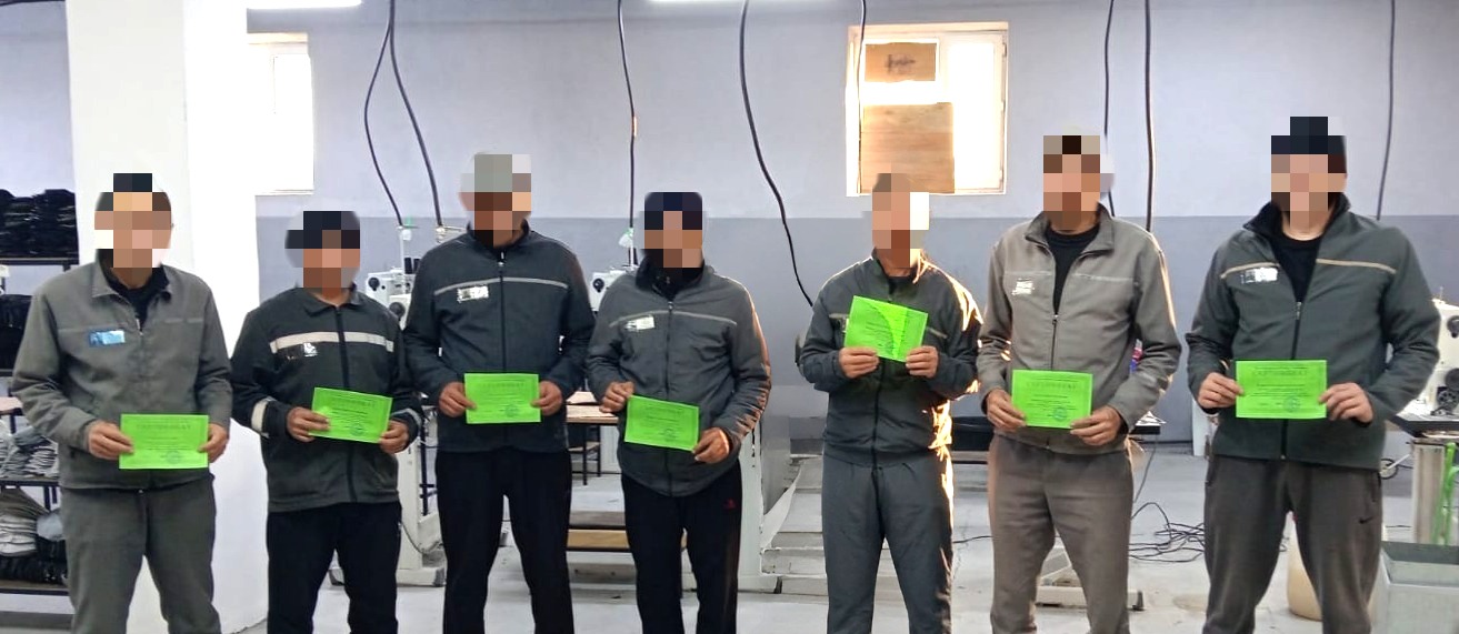 Жамбыл облысы бойынша Қылмыстық-атқару жүйесі департаментіне бағынысты №25 мекемесінің өндіріс аумағындағы РМК «Еңбек Тараз» филиалының бос тұрған ғимараттарында жаңа жұмыс орындарының ашылуына және сотталағандарды жұмыспен қамту және жұмыспен қамтылғандардың санын арттыру мақсатымен «ТаразКожОбувь» ЖШС-мен «Өзара ынтымақтастық мемарандум» келісімшарты арқылы жазасын өтеп жатқан сотталғандарға аяқкиім тігуді үйрету бойынша қысқамерзімді оқу курсы оқытылып, сертификат берілді.