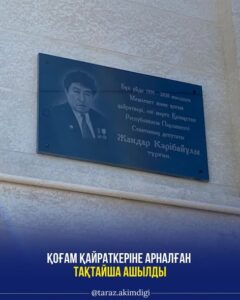 Бүгін мемлекет және қоғам қайраткері, Жамбыл облысының Құрметті азаматы Жандар Кәрібайұлына арналған тақтайшаның ашылу рәсімі өтті.