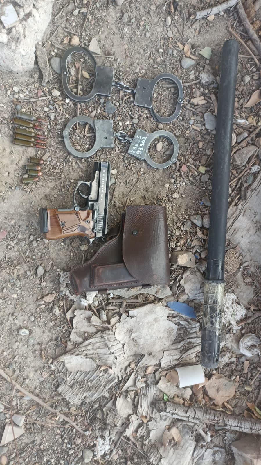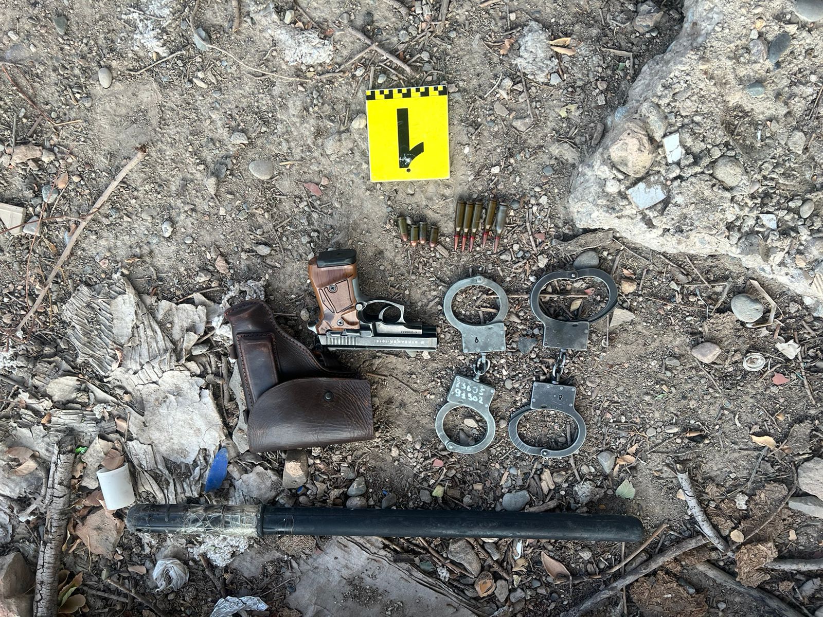 При проведении ОРМ сотрудиниками УКП совместно с сотрудиниками УЖД 158/2 в конце проспекте Толе би г. Тараз заброшенным здание обнаружен полителеновый пакет черного цвета где содержимое: 1 ед.пистолет марки Streamer-1014 за номерам К-006822, 1 штук кабура, 2 ед наручника за #и3180, #02440, 4 штук патрон калибра 9мм, 5 штук патроны калибра 5,45 мм, 1 штук ПР (дубинка). При проверке по базе «webinterface» по категорию «криминальное оружие» установлено что данный ружье похищен из здании ДП в момент массовых беспорядков.