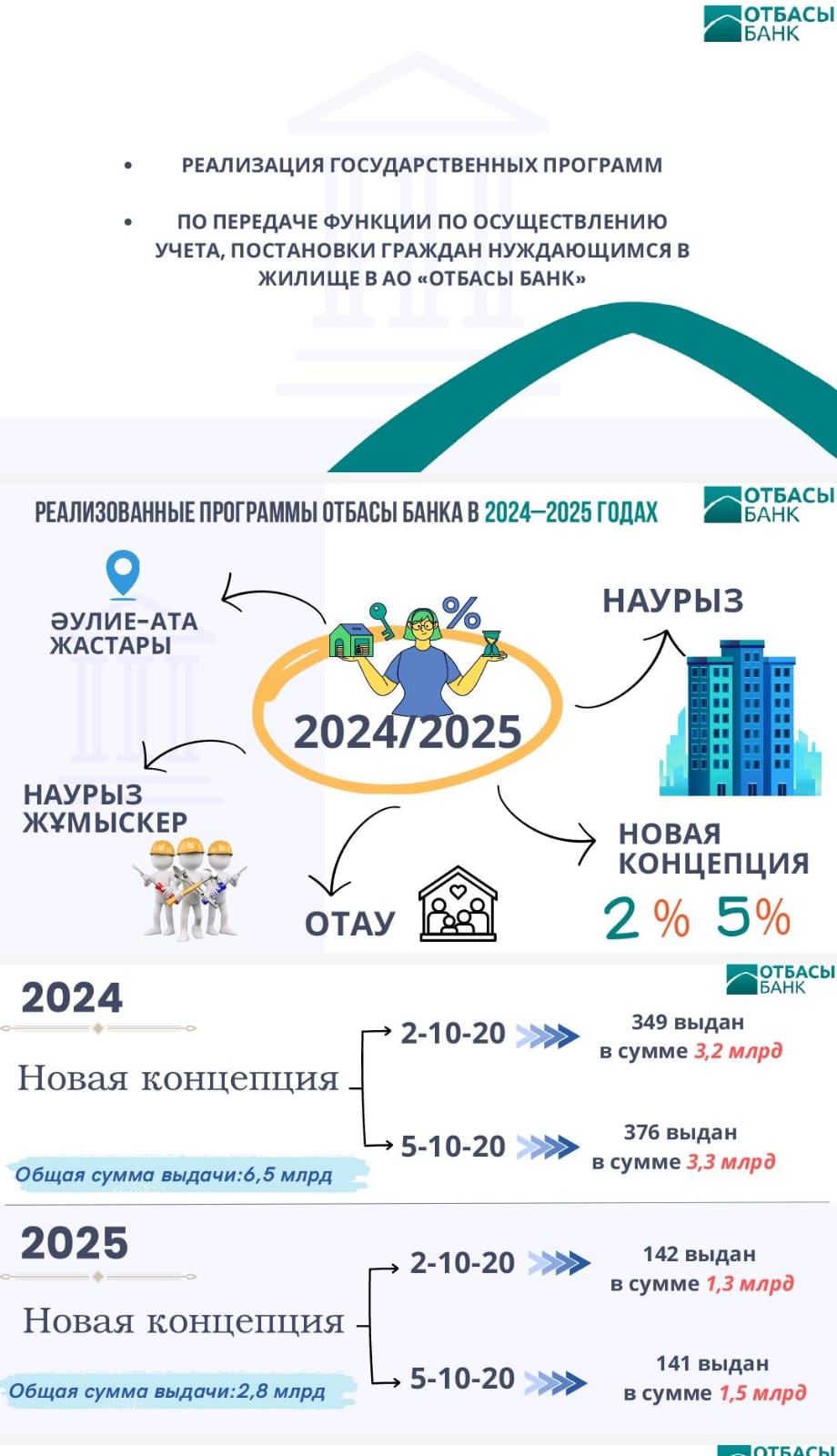 Бүгінде банк арқылы бірнеше тұрғын үй бағдарламалары жүзеге асырылып келеді. Атап айтсақ: