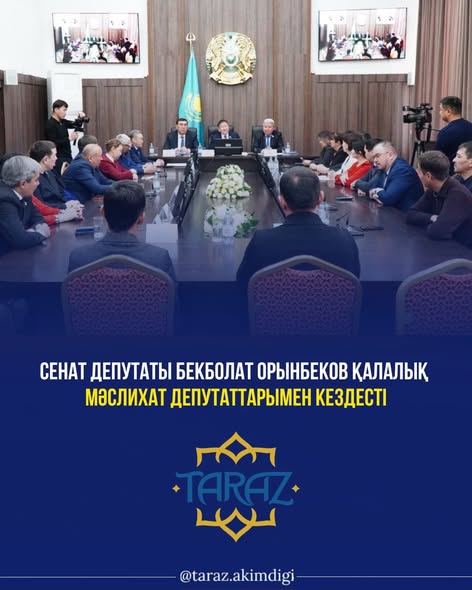 Тараз қалалық мәслихатының төрағасы Кенжебек Олжабай Сенат депутатының өңірге арнайы жұмыс сапары аясында қалалық мәслихат депутаттарымен жүздесуі – жергілікті жердегі проблемаларды заң шығару деңгейінде көтеруге, халықтың мұң-мұқтажын нақты жеткізуге үлкен мүмкіндік беретінін айтты.