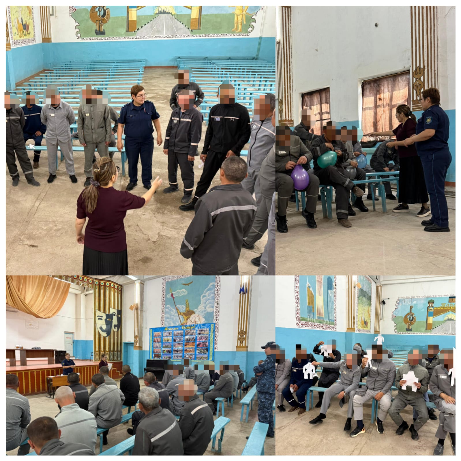 Жамбыл облысы бойынша ҚАЖ департаментне қарасты✓25 РМ мекемесінде профилактикалық есепте тұрған сотталған азаматтармен «өз-өзіне қол жұмсаудың алдын алу » және олардың эмоционалдық көңіл-күйін тұрақтандыру мақсатында , М.Х.Дулати атындағы Тараз университетімен жасалған меморандум аясында бірлескен жұмыс жоспарына сай, психологиялық қолдау және өмірге деген құлшынысын мақсатында арнайы тренинг ұйымдастырылды. Іс-шараға Тараз университетінің Әлеуметтік психология кафедрасының магистр аға оқытушысы, практик-психолог А.К.Дауренбекованы шақырта отырып, мекеме психологтарымен бірлесе, сотталған азаматтарға, эмоционалдық жағдайын жақсартуға және ішкі ресурстарын дамытуға бағытталған жұмыстар жүргізілді.