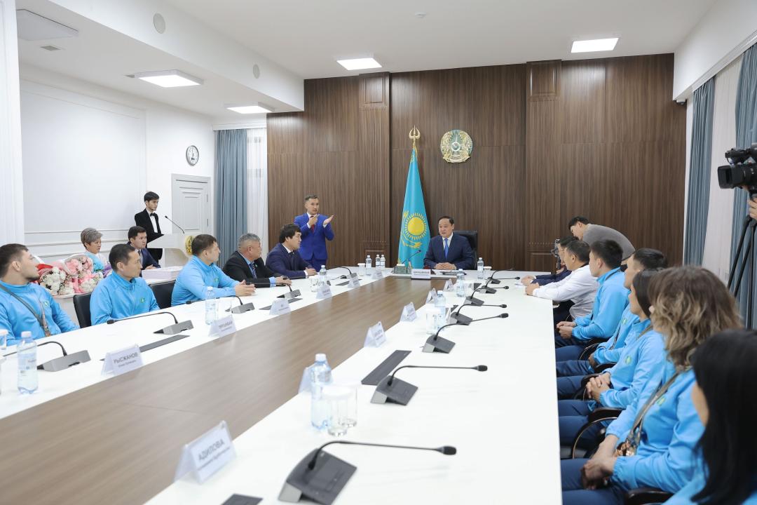 Кездесу барысында аймақ басшысы жоғары нәтижелерге қол жеткізуде аянбай тер төккен спортшыларға алғысын айтып, олардың шыңдалуына еңбек сіңірген бапкерлерге ризашылығын білдірді.