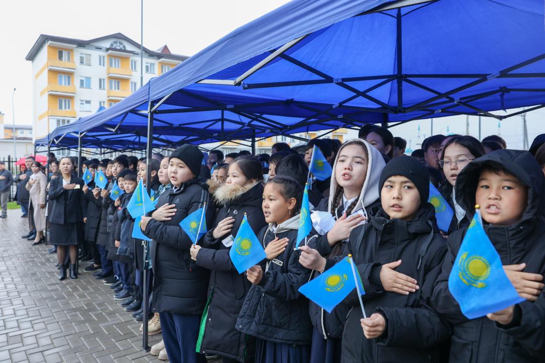 Жаңа мектептің салтанатты ашылу рәсімінде Жамбыл облысының әкімі Ербол Қарашөкеев құттықтау сөз сөйлеп, балалардың алаңсыз білім мен тәрбие алуына қолайлы жағдай жасау – негізгі міндет екенін атап өтті.